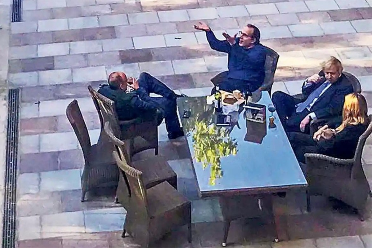 L’immagine, pubblicata dal quotidiano The Guardian domenica scorsa, mostra Johnson con la sua compagna Carrie, che sembra tenere in braccio il loro figlio appena nato, e altre due persone a un tavolo su una terrazza nel giardino di Downing Street con formaggio e vino.