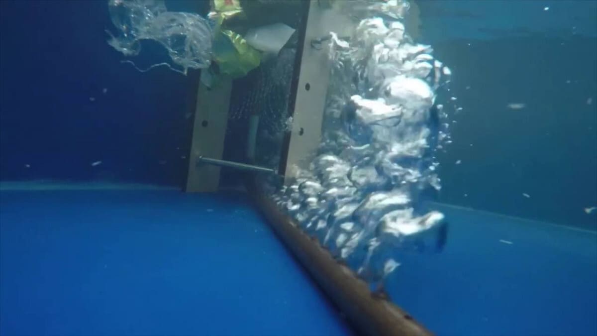 Grazie a questa barriera la plastica che inquina i fiumi, per poi finire nei nostri oceani, viene catturata. Per far ciò si utilizza un compressore che, tramite un tubo forato nel letto del fiume, pompa l’aria che fuoriesce dai fori creando delle bolle le quali spingono la plastica verso l’alto.